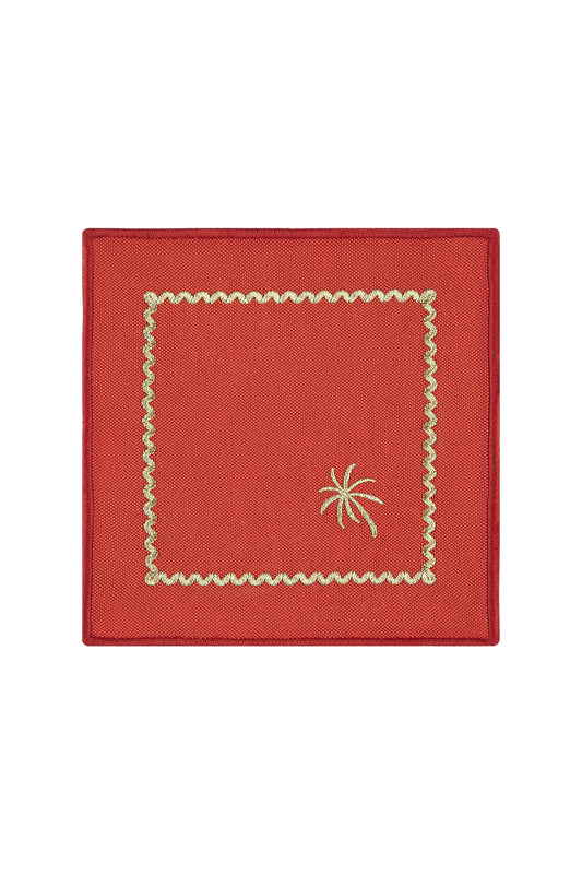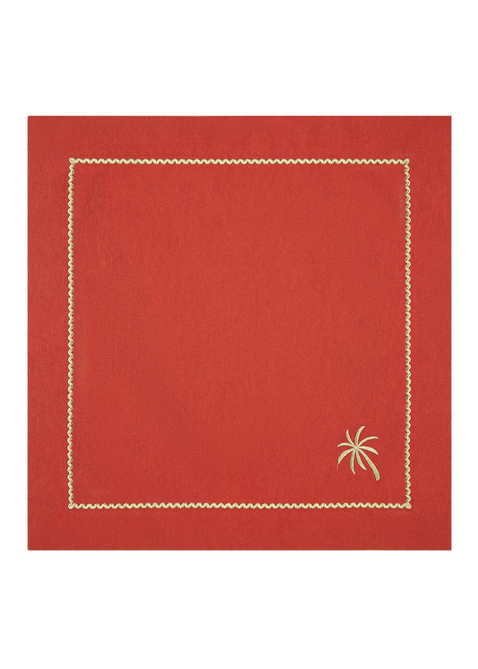 Brick Red Embroidered Cocktail Napkin Set Of 4 - “ Brick Red Palm Charm”