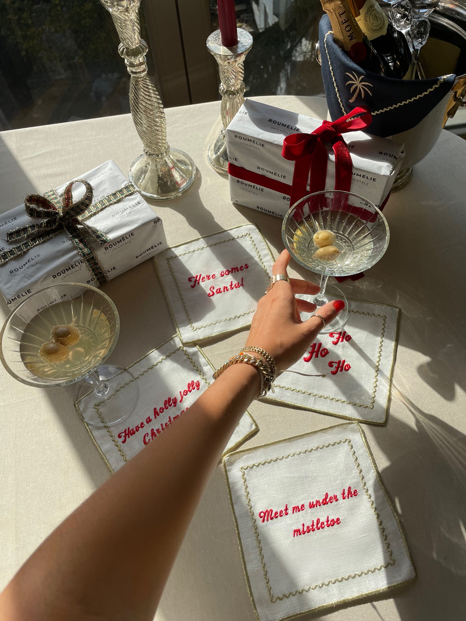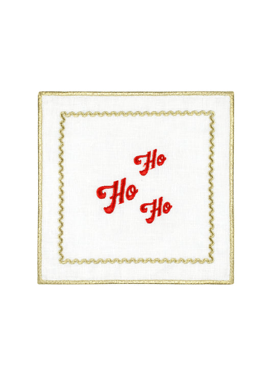 Embroidered Linen Cocktail Napkin Set Of 4 - “Christmas Cheer”