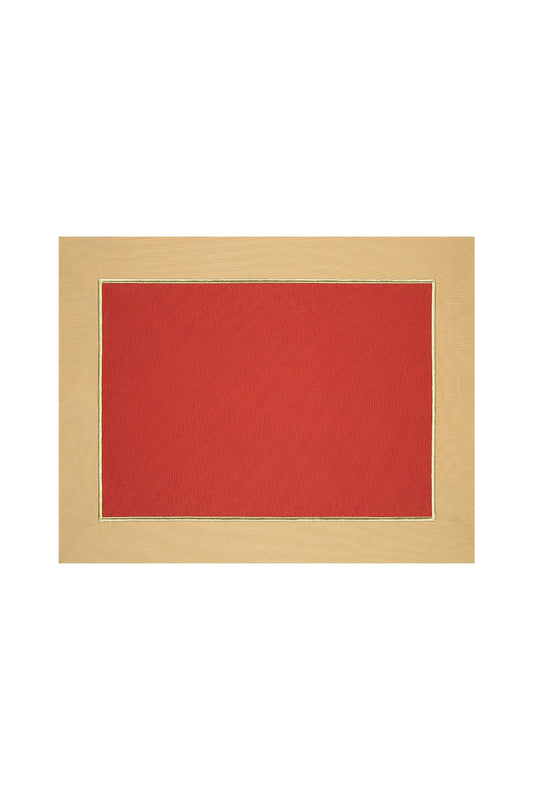 Brick Red & Cookie With Gold Embroidered, Timeless Placemat Set Of 4 - “Sunset Therapy”