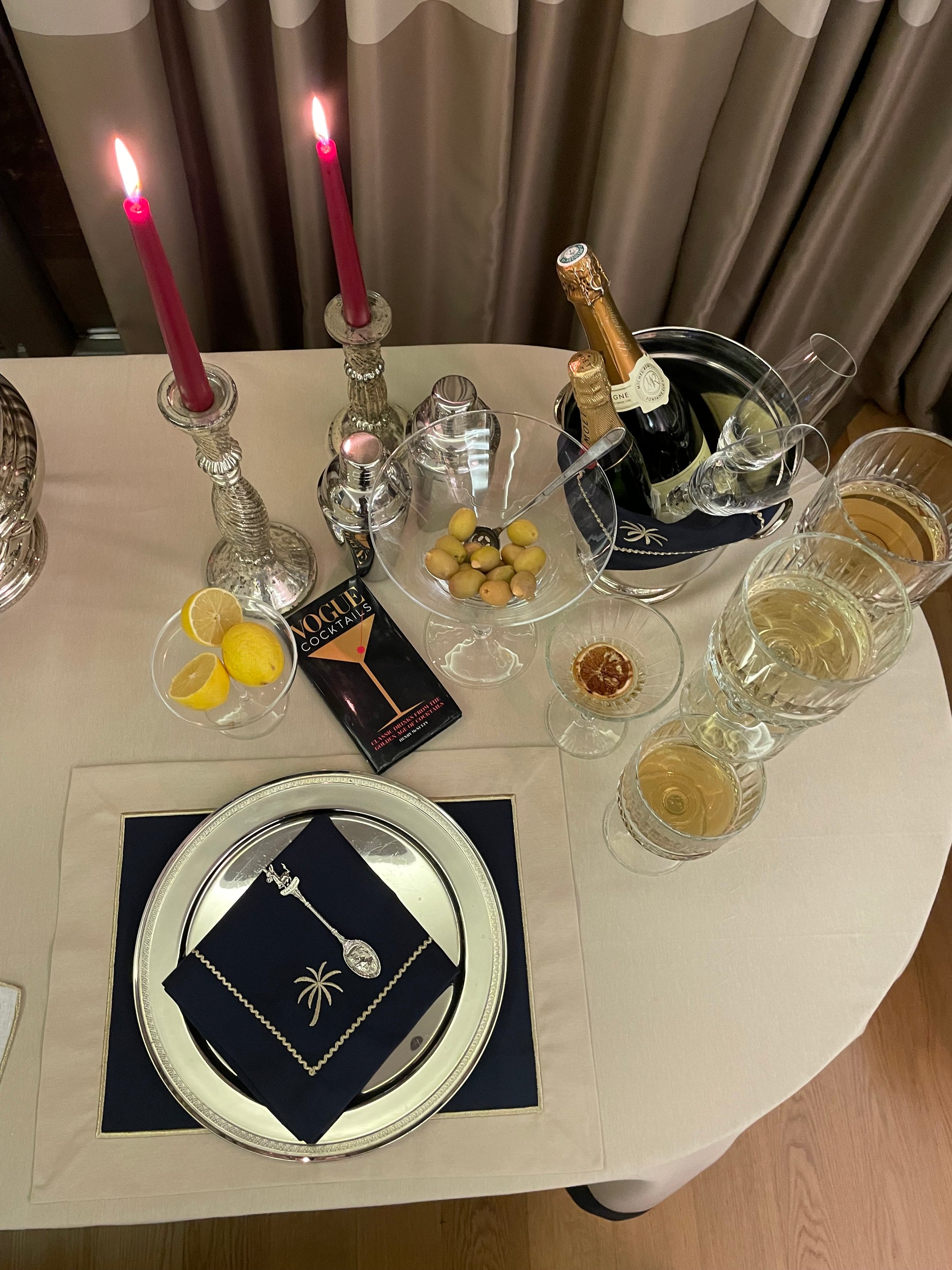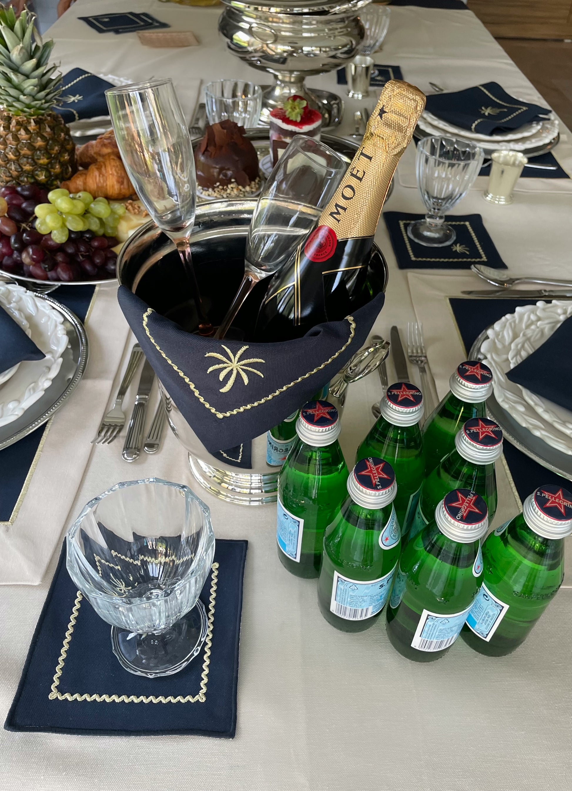 Beige & Navy Blue With Gold Embroidered, Timeless Tablecloth , 260x160cm -“Midday Magic Tablecloth”