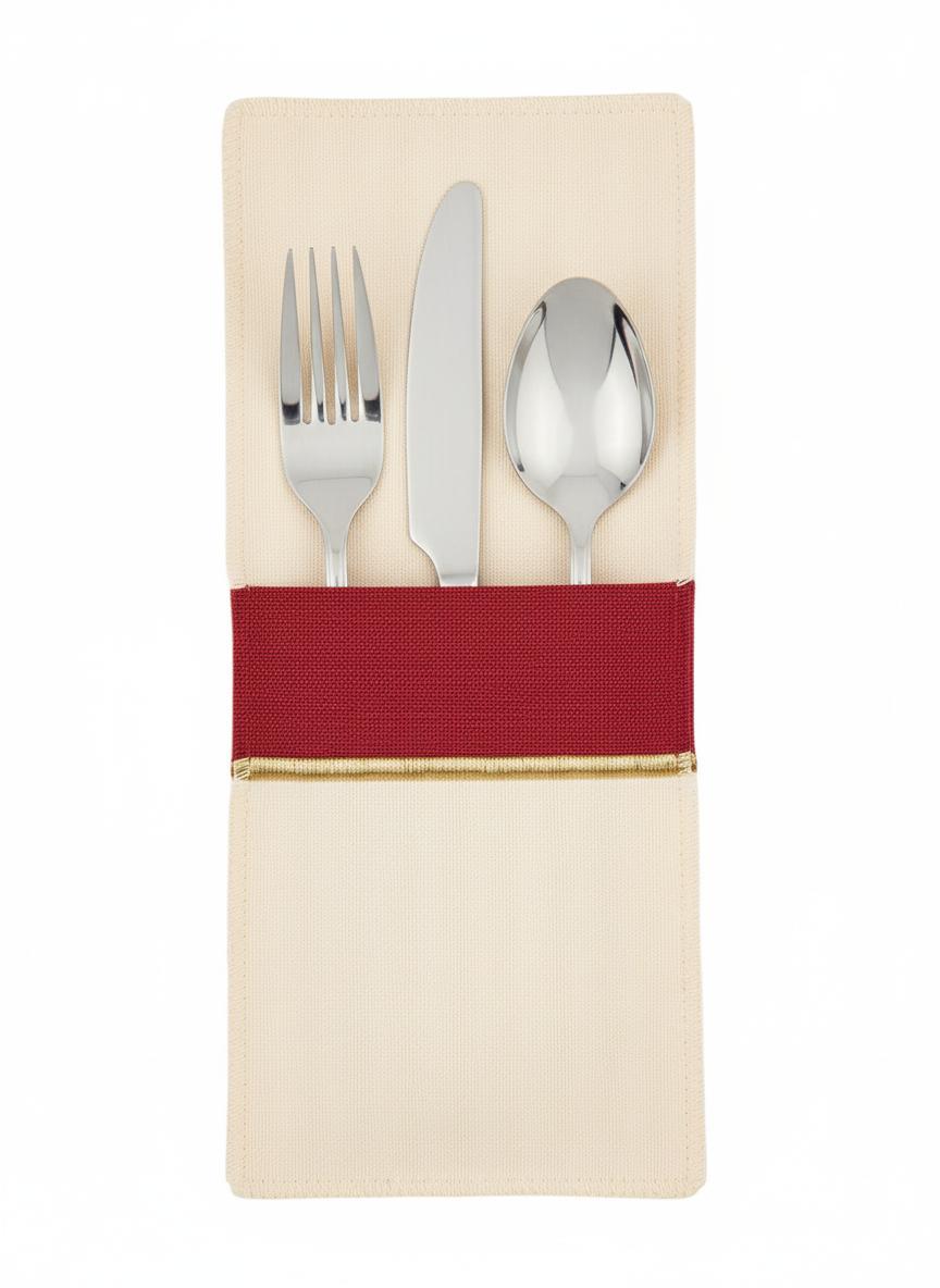 Bordeaux Kırmızı Detaylı Pamuklu 4'lü Çatal Bıçak Kesesi Seti
