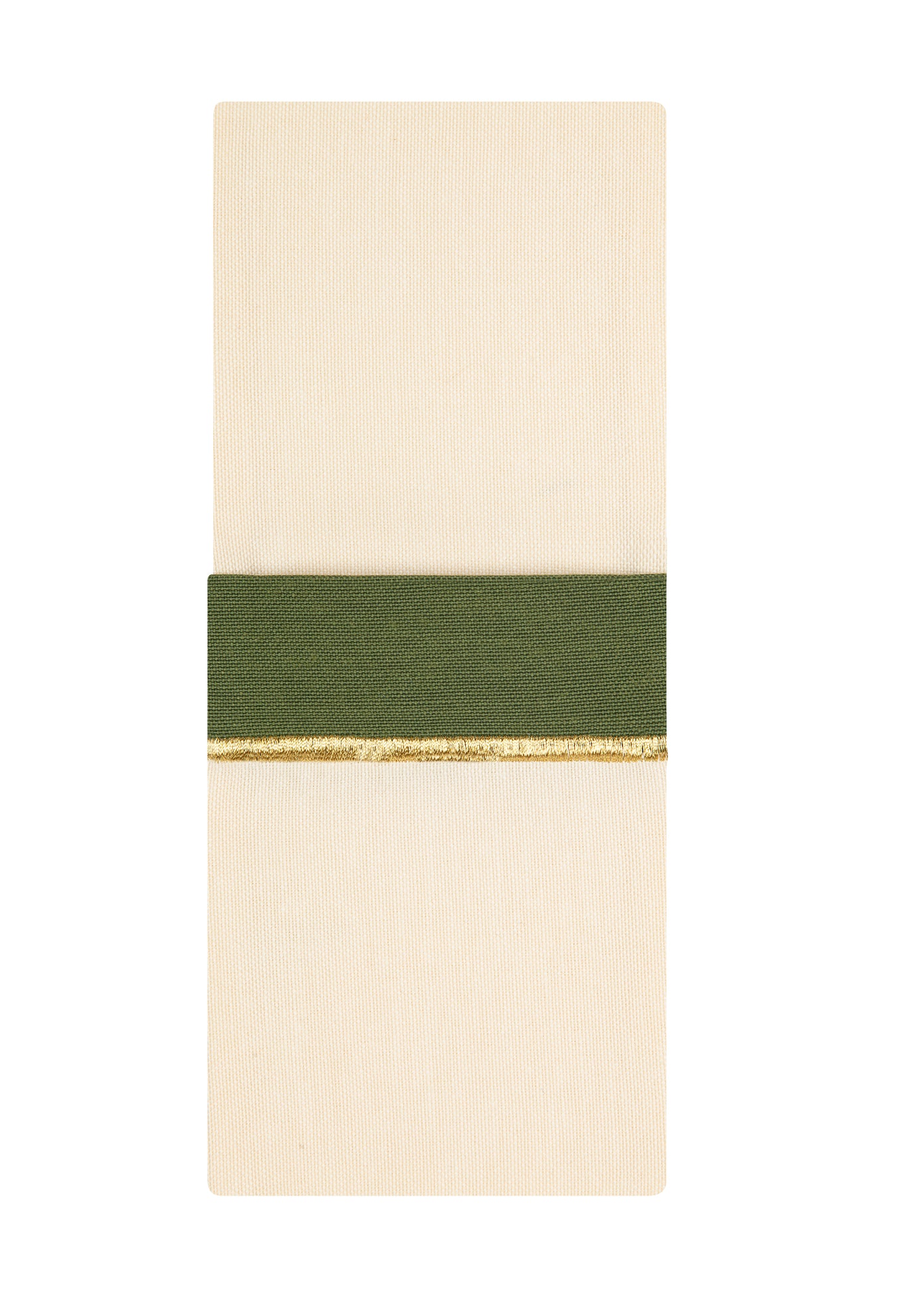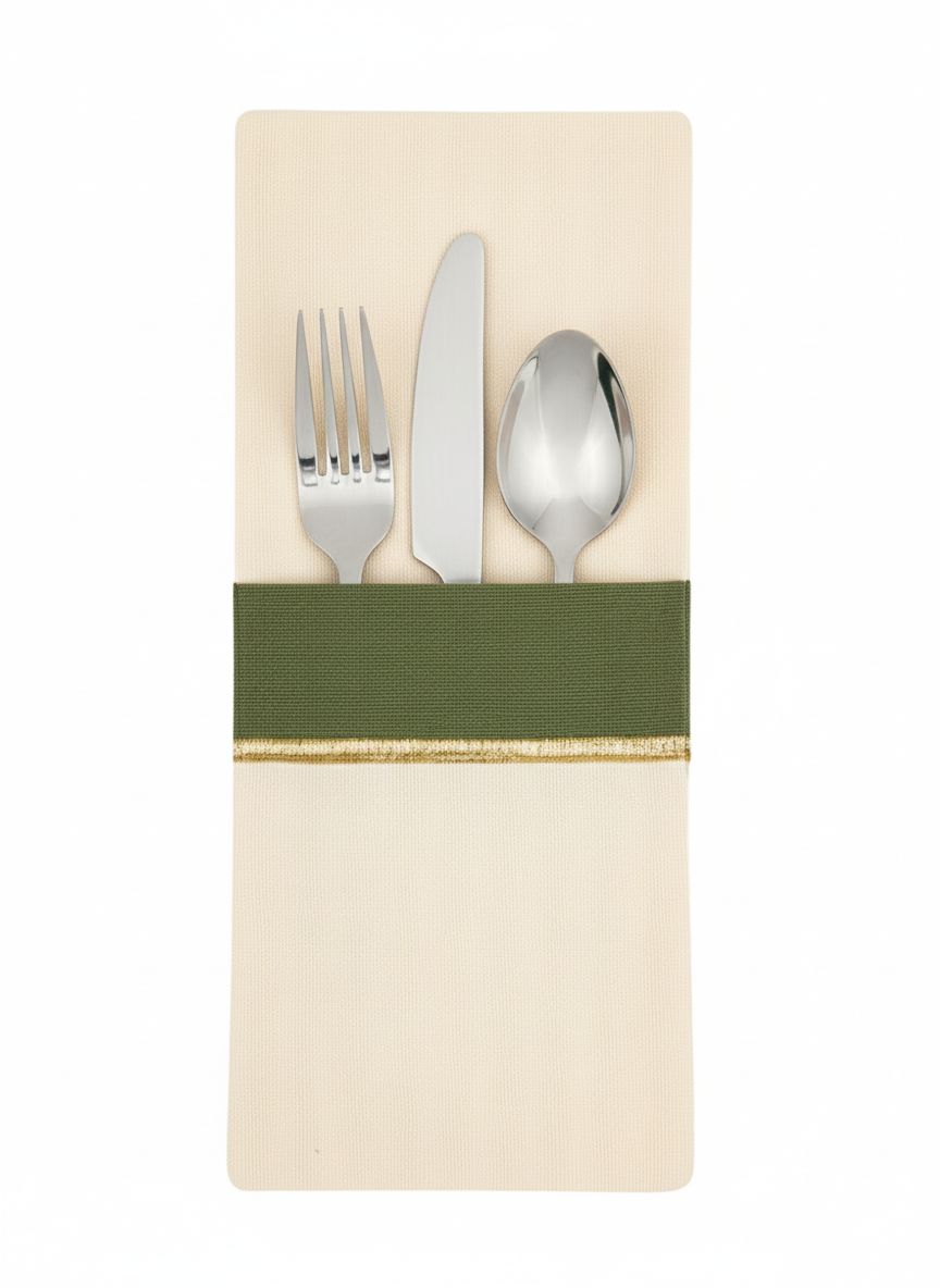Yeşil bordür ve kremin zarif tonları, doğanın dinginliğini sofralara taşırken doğal bir uyum ve zamansız bir zarafet yaratır