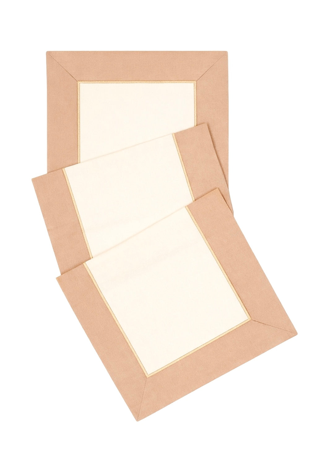 Pure Harmony Krem & Bej Kumaş Üzerine Altın Renk İşlemeli Runner 150x50 cm